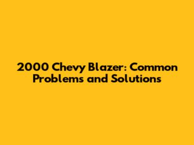 2000 Chevy Blazer: Problems And Solutions
