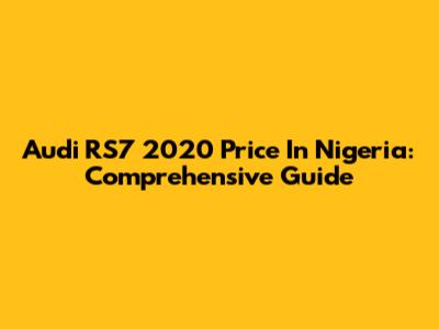 Audi RS7 2020 Price In Nigeria: Comprehensive Guide