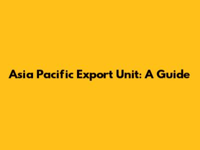 Asia Pacific Export Unit: A Guide