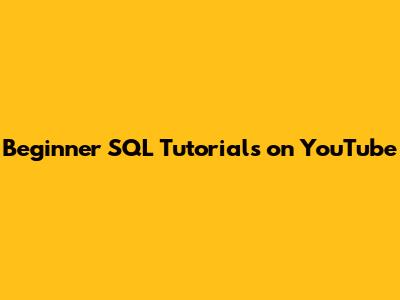 Beginner SQL Tutorials On YouTube