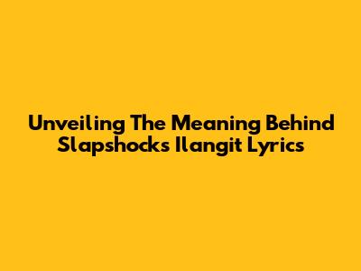 Unveiling The Meaning Behind Slapshock's 'Ilangit' Lyrics