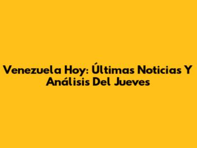 Venezuela Hoy: Últimas Noticias Y Análisis Del Jueves