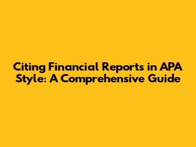 Citing Financial Reports In APA Style: A Comprehensive Guide