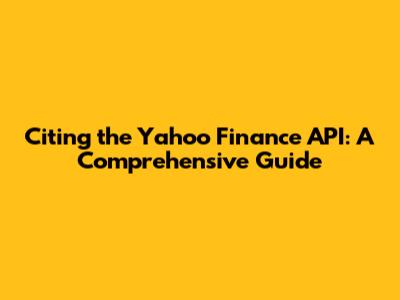 Citing The Yahoo Finance API: A Comprehensive Guide