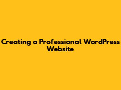Create A Professional WordPress Website