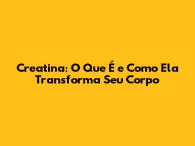 Creatina: O Que É E Como Ela Transforma Seu Corpo