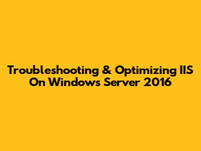 Troubleshooting & Optimizing IIS On Windows Server 2016