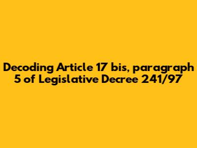 Decoding Article 17 Bis, Paragraph 5 Of Legislative Decree 241/97