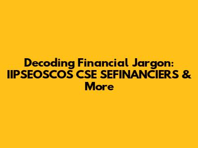 Decoding Financial Jargon: IIPSEOSCOS CSE SEFINANCIERS & More
