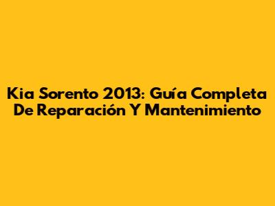 Kia Sorento 2013: Guía Completa De Reparación Y Mantenimiento