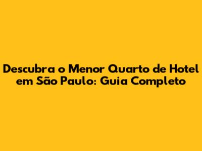 Descubra O Menor Quarto De Hotel Em São Paulo: Guia Completo