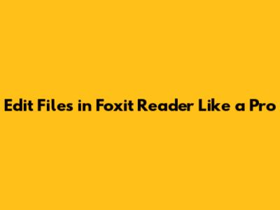 Edit Files In Foxit Reader Like A Pro