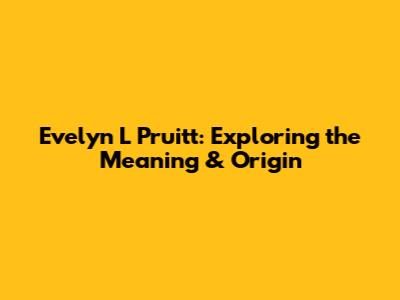 Evelyn L Pruitt: Exploring The Meaning & Origin