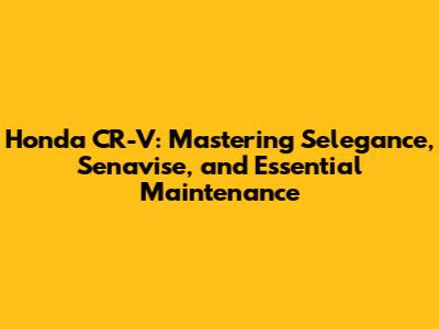Honda CR-V: Selegance, Senavise & Maintenance Insights
