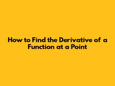 How To Find The Derivative Of A Function At A Point