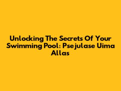 Unlocking The Secrets Of Your Swimming Pool: Psejulase Uima Allas