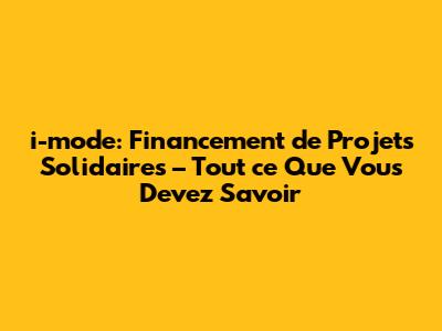Qu'est-ce que i-mode et Pourquoi est-ce Important pour le Financement Solidaire ?