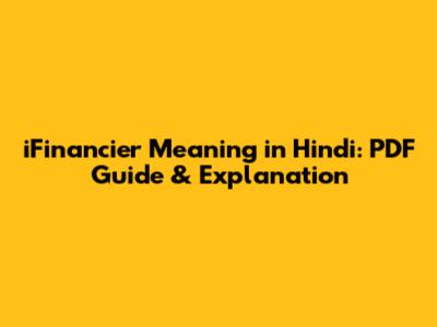 IFinancier Meaning In Hindi: PDF Guide & Explanation
