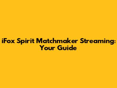 IFox Spirit Matchmaker Streaming: Your Guide
