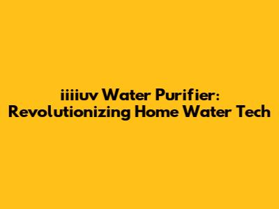 Iiiiuv Water Purifier: Revolutionizing Home Water Tech