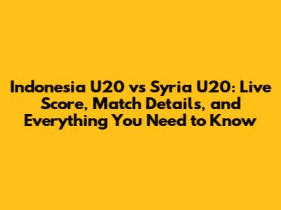 Indonesia U20 Vs Syria U20: Match Updates & Analysis