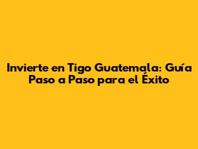 Invierte En Tigo Guatemala: Guía Paso A Paso Para El Éxito