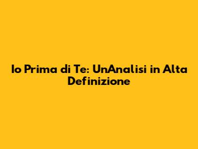 In definitiva, "Io Prima di Te" è un film che resterà nel cuore di tutti coloro che lo vedranno. La sua storia, le sue performance, la sua regia e la sua fotografia lo rendono un'esperienza cinematografica unica e indimenticabile. Non perdete l'occasione di rivederlo e di emozionarvi ancora una volta, riscoprendo la magia di questo capolavoro in alta definizione.