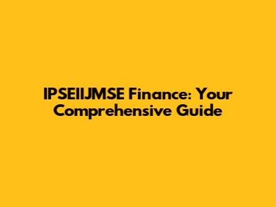 IPSEIIJMSE Finance: Everything You Need To Know