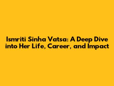 Ismriti Sinha Vatsa: Biography, Career, And Achievements