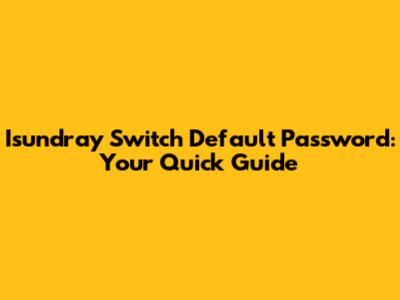 Isundray Switch Default Password: Your Quick Guide