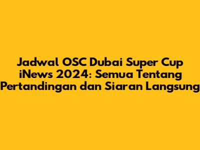 Mengupas Tuntas Jadwal OSC Dubai Super Cup iNews 2024: Rangkaian Pertandingan Penuh Gengsi