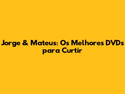 Se você é fã da dupla, não perca a oportunidade de ter os melhores DVDs da sua coleção. Reviva os shows, cante junto e celebre a música que conquistou o Brasil. Com certeza, cada DVD é uma experiência única e inesquecível. Então, não perca mais tempo e comece agora mesmo a sua coleção! A música de Jorge & Mateus está esperando por você. E aí, qual DVD você vai assistir hoje?