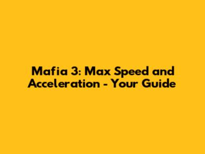 Mafia 3: Max Speed And Acceleration - Your Guide
