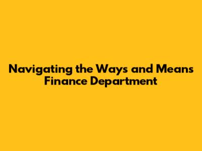 Navigating The Ways And Means Finance Department