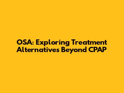 OSA: Exploring Treatment Alternatives Beyond CPAP