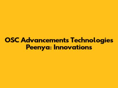 OSC Advancements Technologies In Peenya: Innovations