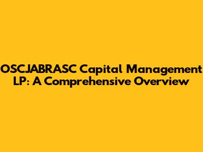 OSCJABRASC Capital Management: A Deep Dive
