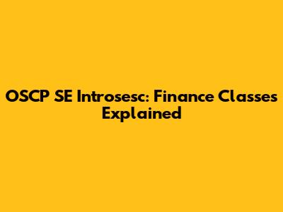 OSCP SE Introsesc: Finance Classes Explained
