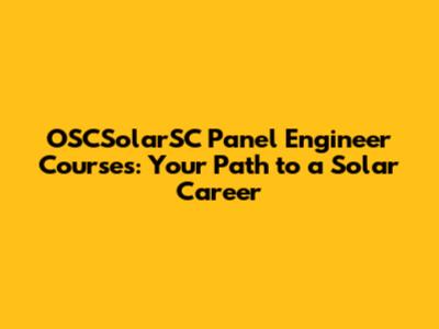 How to Choose the Right OSCSolarSC Panel Engineer Course