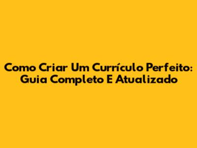 Como Criar Um Currículo Perfeito: Guia Completo E Atualizado