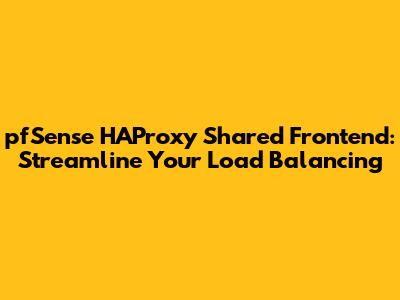 PfSense HAProxy Shared Frontend: Streamline Your Load Balancing