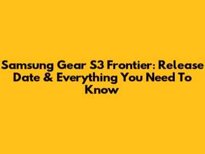 Samsung Gear S3 Frontier: Release Date & Everything You Need To Know