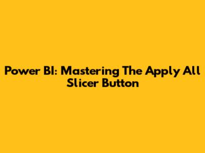 Power BI: Mastering The Apply All Slicer Button