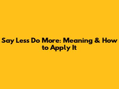 Say Less Do More: Meaning & How To Apply It