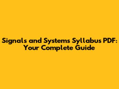 Signals And Systems Syllabus PDF: Your Complete Guide