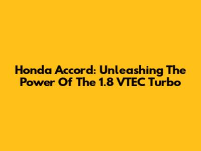 Honda Accord: Unleashing The Power Of The 1.8 VTEC Turbo