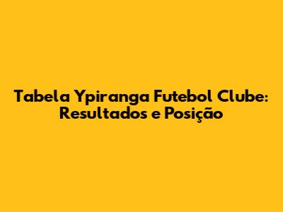 Tabela Ypiranga Futebol Clube: Resultados E Posição