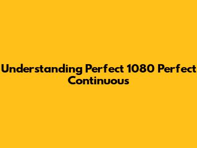 Understanding Perfect 1080 Perfect Continuous