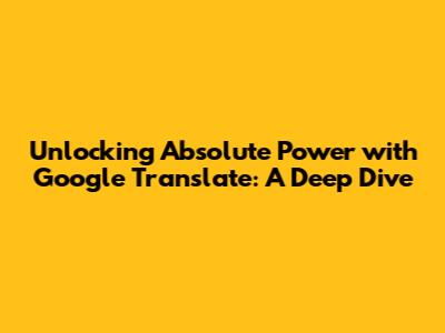 Unlocking Absolute Power With Google Translate: A Deep Dive