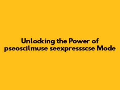 Unlocking The Power Of Pseoscilmuse Seexpressscse Mode